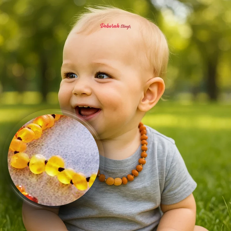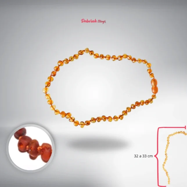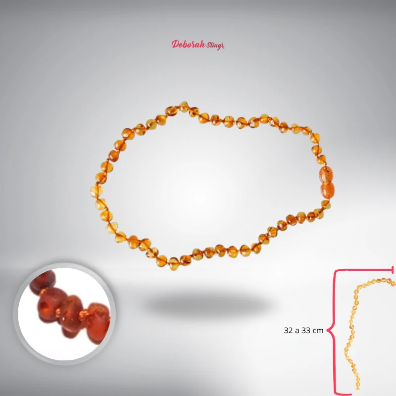 Colar de âmbar para bebês com certificado de autenticidade e 90 dias de garantia no fecho.